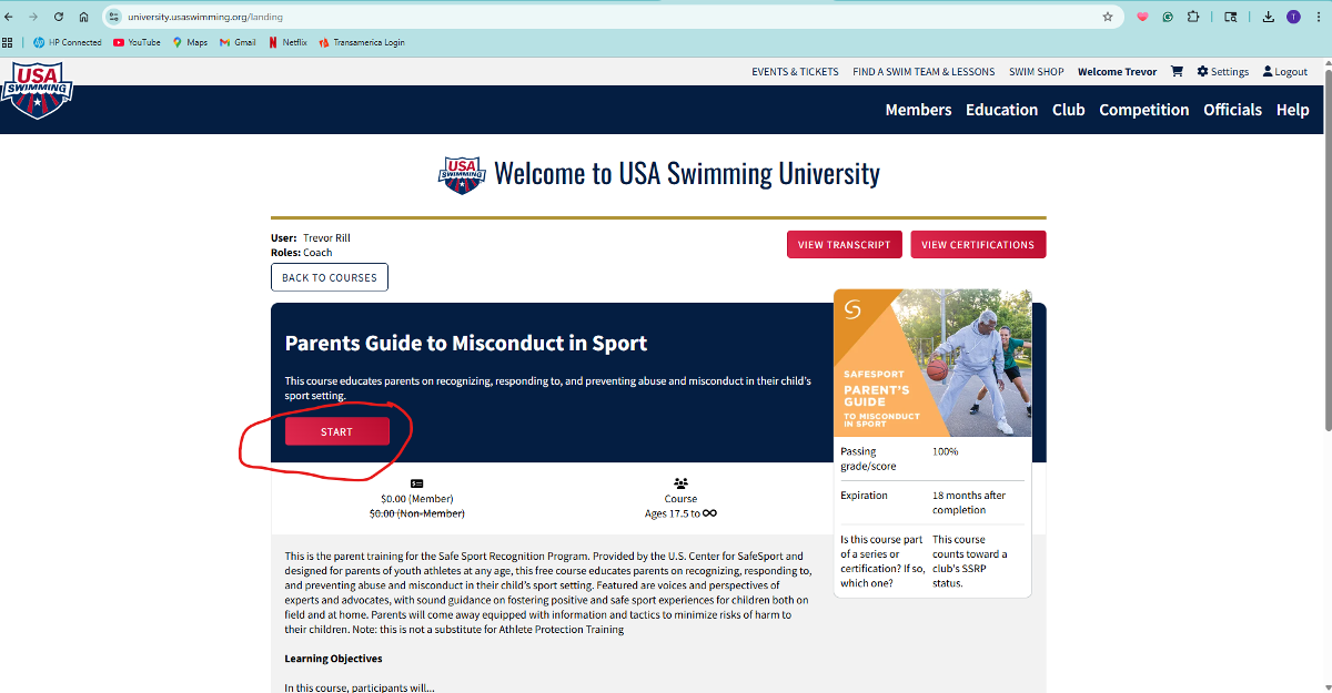 Eagle Swim Team needs your help as we work toward beining recognized as a USA Swimming Safe Sport Team. To accomplish our goal we need as many of you as possible to complete the USA Swimming course named "Parents Guid to Misconduct in Sports."
